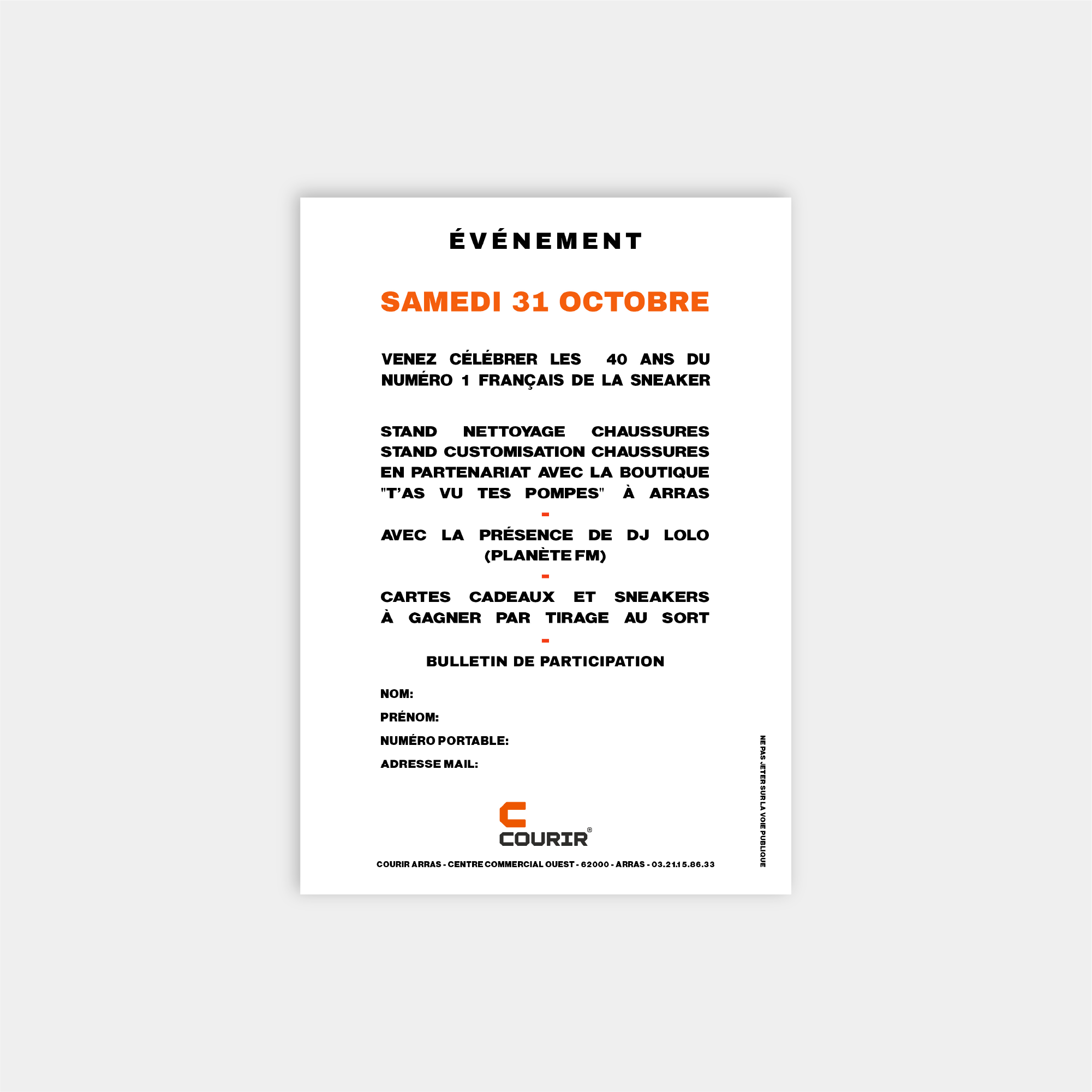 Création d’un flyer événementiel pour la boutique Courir Arras, conçu pour promouvoir un événement exclusif.